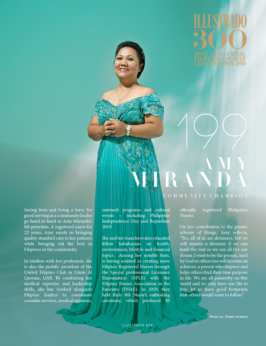 He urges Filipinos to be exceptional models of employees and residents in the Middle East, proactive in elevating living and professional standards among their peers. “If all of us can do that, it would have a great impact on how we are perceived as professionals in other parts of the world,” he says.