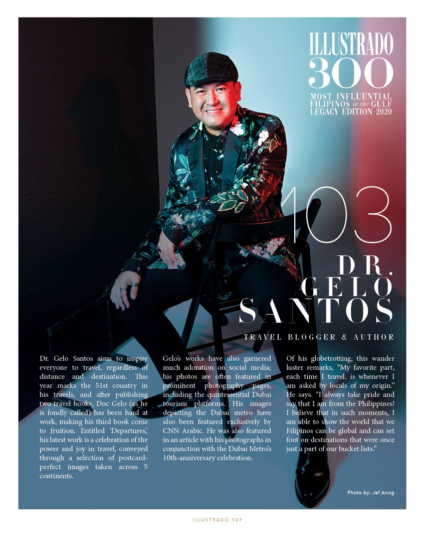 Trailblazer – Gelo Santos Travel Blogger & Author Dr. Gelo Santos aims to inspire everyone to travel, regardless of distance and destination. This year marks the 51st country in his travels, and after publishing two travel books, Doc Gelo (as he is fondly called) has been hard at work, making his third book come to …