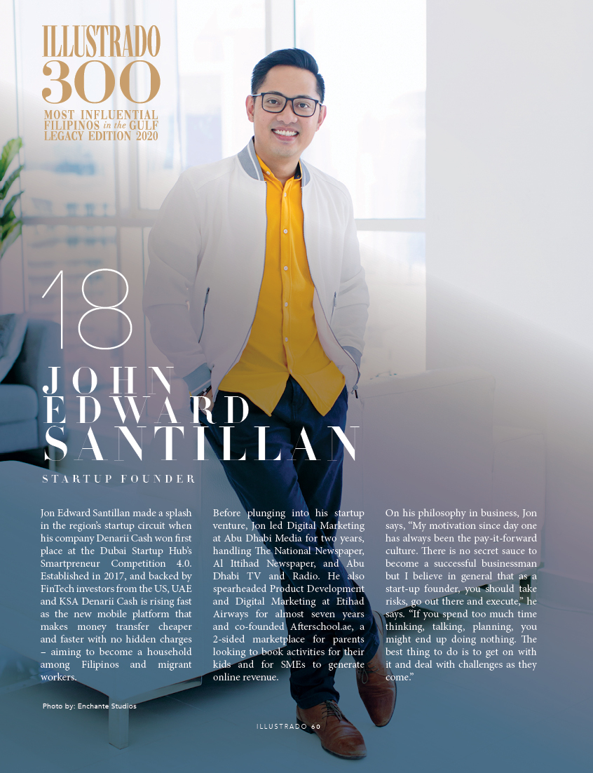 Gamechanger – Jon Edward Santillan Startup Founder Jon Edward Santillan made a splash in the region’s startup circuit when his company Denarii Cash won first place at the Dubai Startup Hub’s Smartpreneur Competition 4.0. Established in 2017, and backed by FinTech investors from the US, UAE and KSA Denarii Cash is rising fast as the …