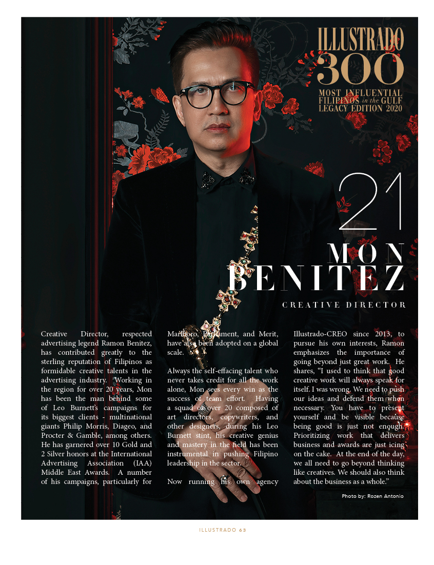Gamechanger – Ramon Benitez Creative Director Creative Director, respected advertising legend Ramon Benitez, has contributed greatly to the sterling reputation of Filipinos as formidable creative talents in the advertising industry. Working in the region for over 20 years, Mon has been the man behind some of Leo Burnett’s campaigns for its biggest clients – multinational …