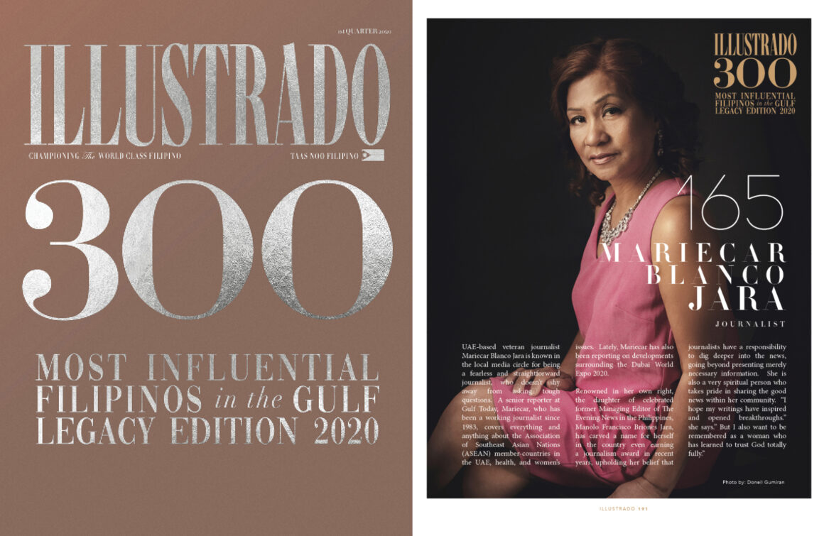 Mariecar is your quintessential journalist – ever-curious, resourceful, resilient, and with a level of integrity that has become an inspiration to the Filipino community in the Middle East. Her beat has taken her far and wide and has earned her various recognitions, such as the The Journalist Award that she received this year from a well-known Gulf-based publication.