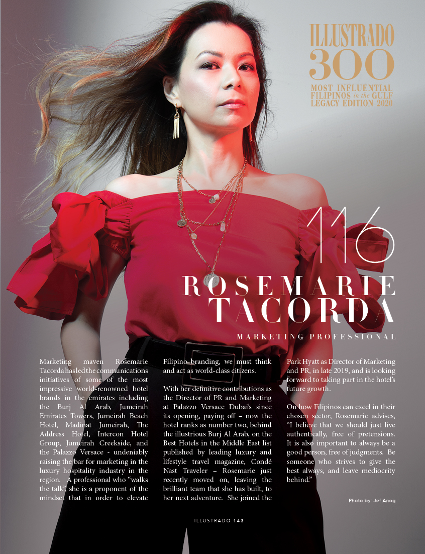Rosemarie is in the field of Marketing and Public Relations, which she very succinctly describes as “a way of solving challenges creatively and making sure that the communication reaches the target audience in its simplest and most elegant form – either by way of creative visuals that convey a specific message or forging business relationships with strategic partners.” Through her experience in a craft that requires meticulous attention to detail, patience, and belief in both the people and the product, she has come to grasp the effect of having a love for what you do; that without it, success would be unachievable.