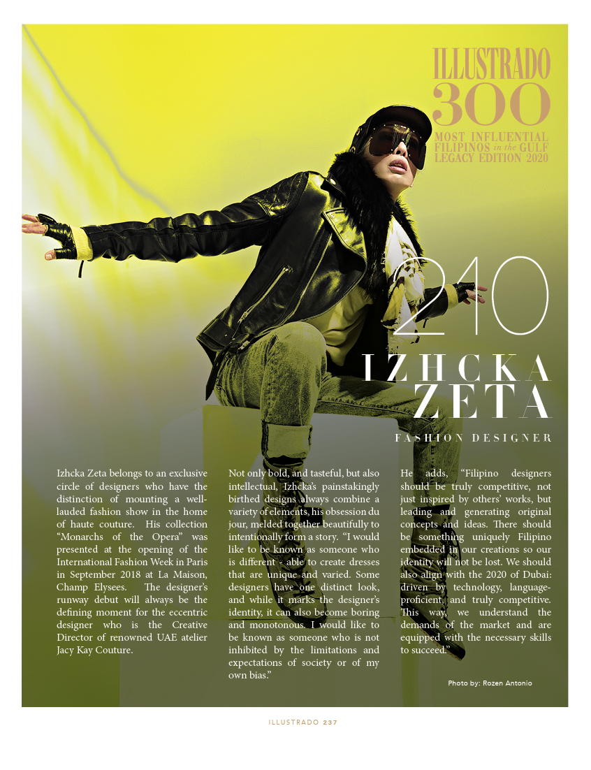 Filipino designer Francis Izhcka Zeta has crafted a name for himself as one of the UAE’s most sought-after haute couturiers. With a skilled eye for intricate and imposing details, his stunning designs enjoy an international clientele, making him a strong sartorial force in the Middle East.