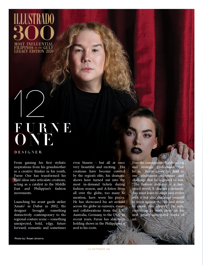 Extraordinary he is – ‘The One and Only.’ Heading a couture brand – Amato – as its founder and artistic driving force for the longest time now, it goes without saying that Furne One is a consummate master of his craft. #illustradomagazine #taasnoofilipino