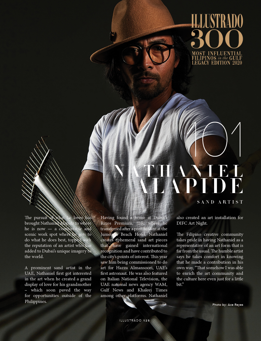 #taasnoofilipino You may know him for his many paintings, and large scale sand murals on Jumeirah beach. For renowned sand artist Nathaniel Alapide, art is a way of life. He believes the uniqueness in art constitutes to “a new language of expression”. #illustradomagazine #100mifg