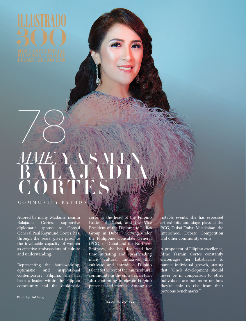 Leading the Filipino Ladies of Dubai, Madame Yasmin Balajadia Cortes plays a pivotal role with her team in organizing, planning and executing most of the cultural diplomacy initiatives of the Philippine Consulate of Dubai and the Northern Emirates. #illustradomagazine #taasnoofilipino #pinoypride