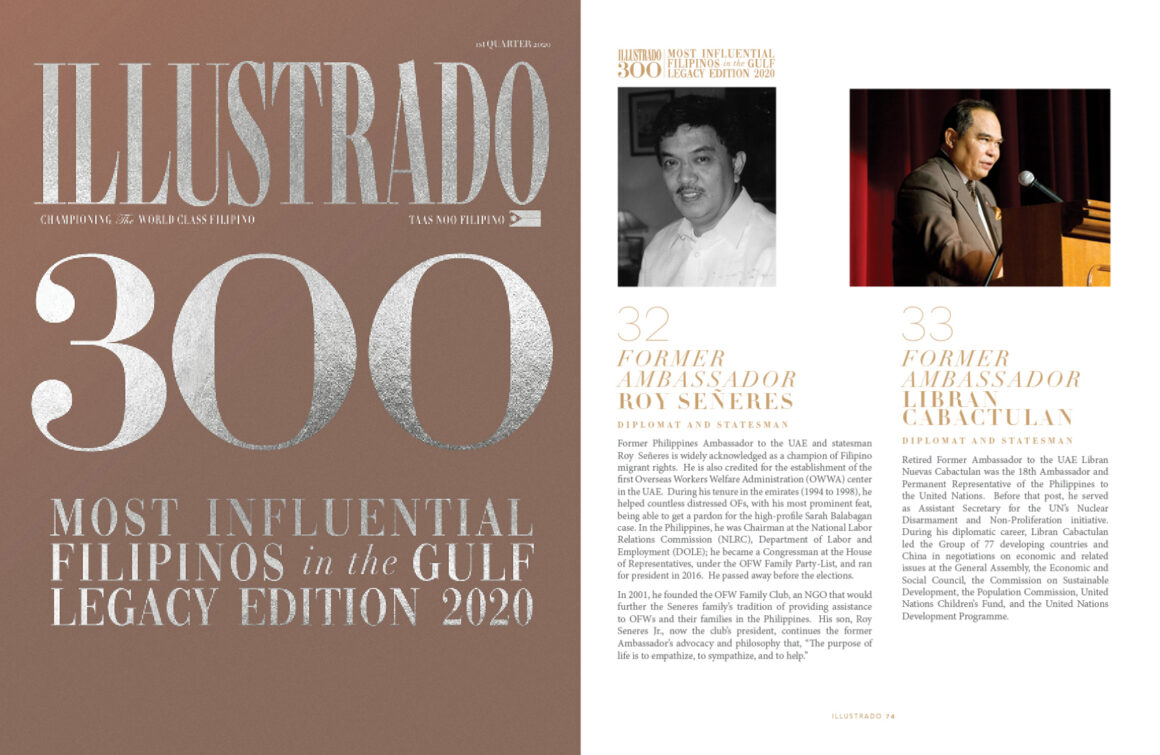 Former Ambassador Roy Señeres Diplomat and Statesman Former Philippines Ambassador to the UAE and statesman Roy Seneres is widely acknowledged as a champion of Filipino migrant rights. He is also credited for the establishment of the first Overseas Workers Welfare Administration (OWWA) center in the UAE. During his tenure in the emirates (1994 to 1998), …