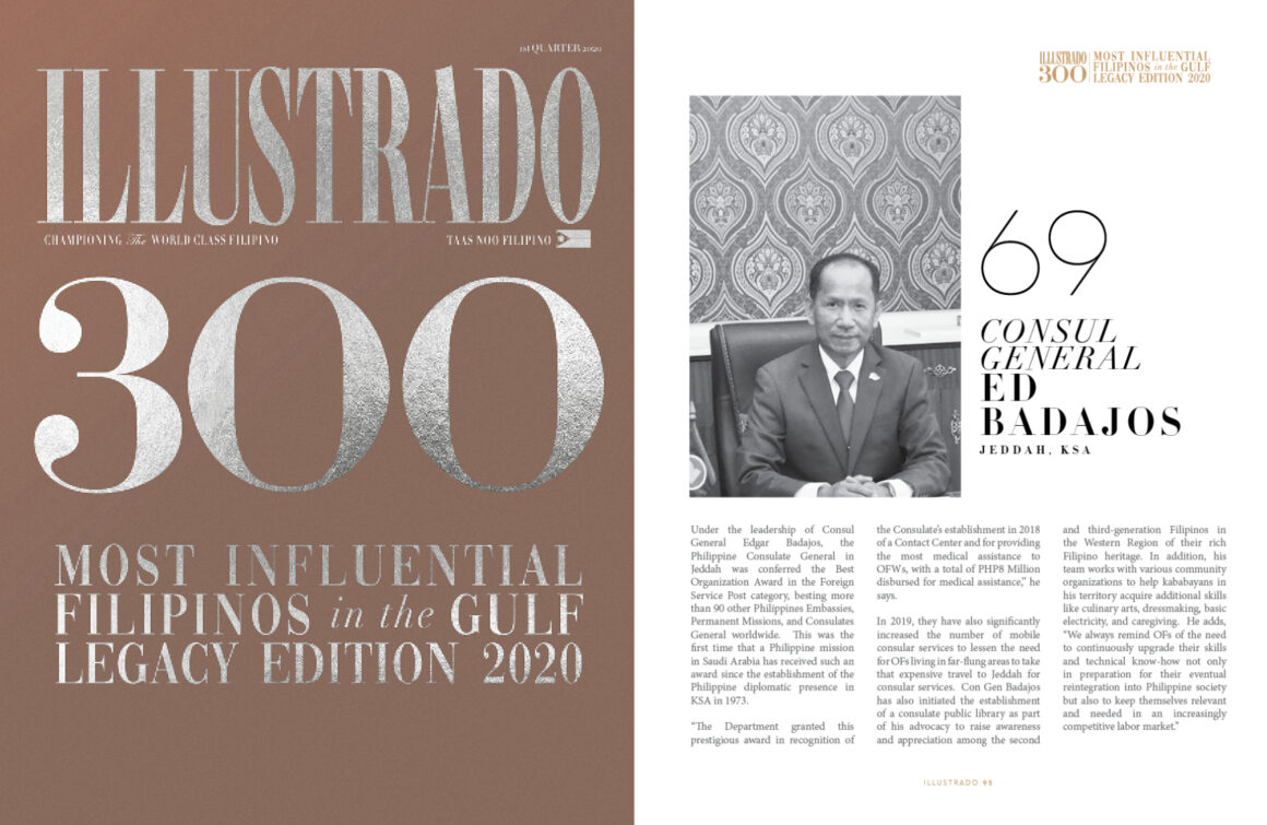 Consul General Edgar Badajos Jeddah, Saudi Arabia Under the leadership of Consul General Edgar Badajos, the Philippine Consulate General in Jeddah was conferred the Best Organization Award in the Foreign Service Post category, besting more than 90 other Philippines Embassies, Permanent Missions, and Consulates General worldwide. This was the first time that a Philippine mission in …