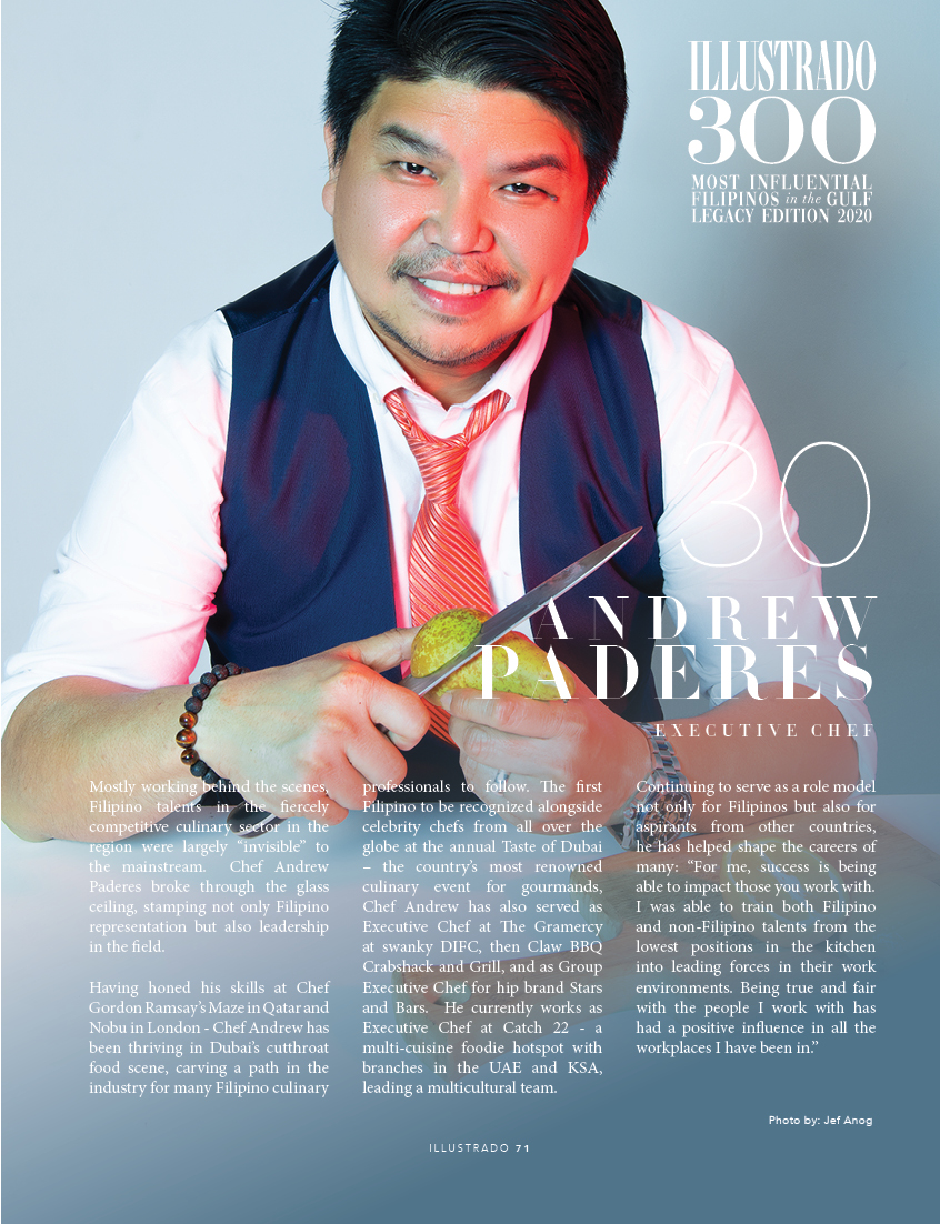 When Chef Andrew Paderes was offered the role of Executive Chef by his first employer in Dubai, he had to ask himself if he could truly step up to the plate. From working at Nobu in London, then Gordon Ramsay’s restaurant Maze in Qatar, Chef Andrew found his way to Dubai as the Executive Chef at the swanky The Gramercy, located at the DIFC, Dubai’s bustling financial district, alongside international brands.
