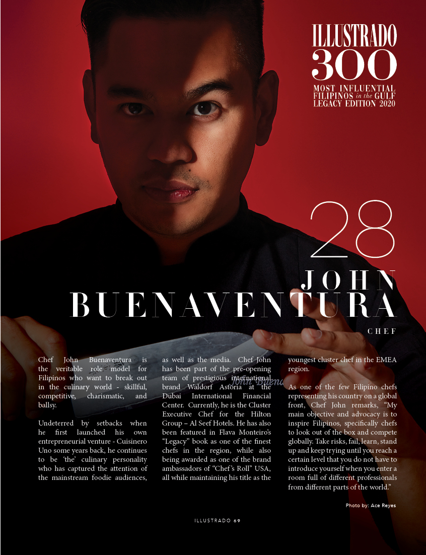 #taasnoofilipino What does it take to run one of Dubai’s hottest conceptual food spots du jour? CEO of Cuisinero Uno, Chef John Buenaventura has been leaving foodies raving with his restaurant’s original tapas creations. As a young entrepreneur putting his stamp on the local food scene, it has been sheer blood, sweat, and tears that lead him to where he stands now. #illustradomagazine #100MIFG