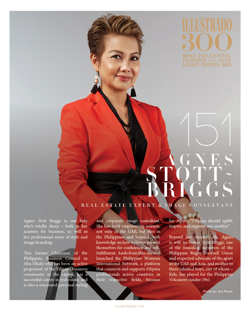 Thoughtleader – Agness Stott Briggs Real Estate Expert & Image Consultant Agnes Stott Briggs is one lady who’s totally sharp – both in her acumen for business, as well as her professional sense of style and image branding. This former Chairman of the Philippine Business Council in Abu Dhabi who has been an active proponent …
